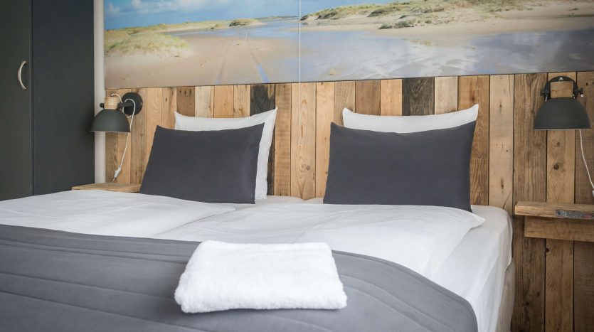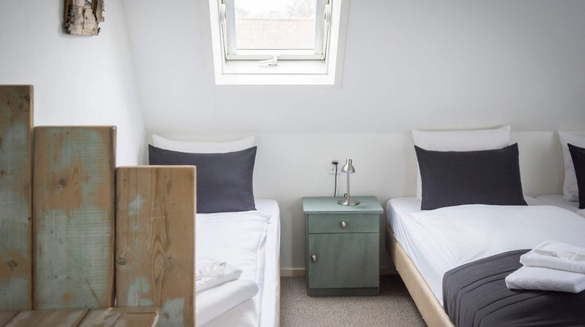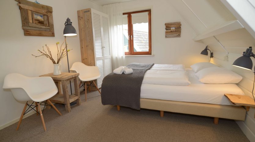 Er zijn 17 comfortabele kamers. Deze tweepersoons- en familiekamers zijn met zorg ingericht en voorzien van eenpersoons boxspringbedden. Het thema strand speelt in dit hotel een centrale rol. Zo zie je in het interieur zelfgemaakte meubels en decoraties van juthout. Ook worden bijzondere strandvondsten tentoongesteld.